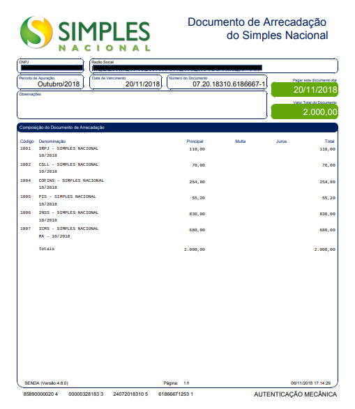 Na próxima segunda-feira, 12 de novembro de 2018, o Documento de Arrecadação do Simples Nacional (DAS) terá um novo modelo.